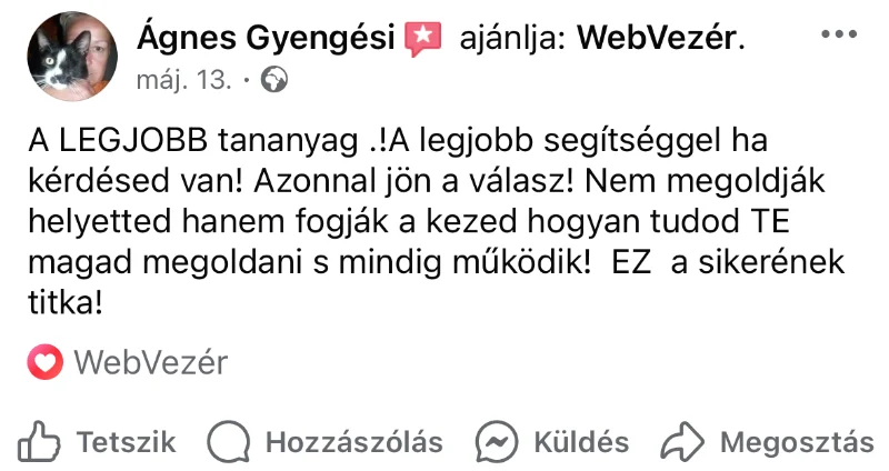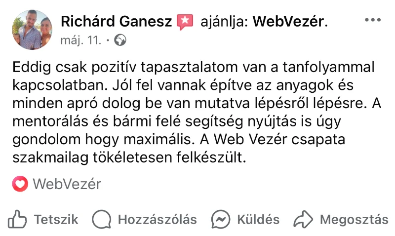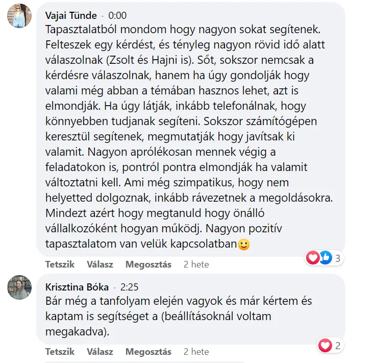 Tanfolyamainkban mindent megtanulsz az ügyfélszerzésről és sokszor személyre szabott segítséget is kaphatsz, ha véletlen nem boldogulnál vele vagy további útmutatásra lenne szükséged