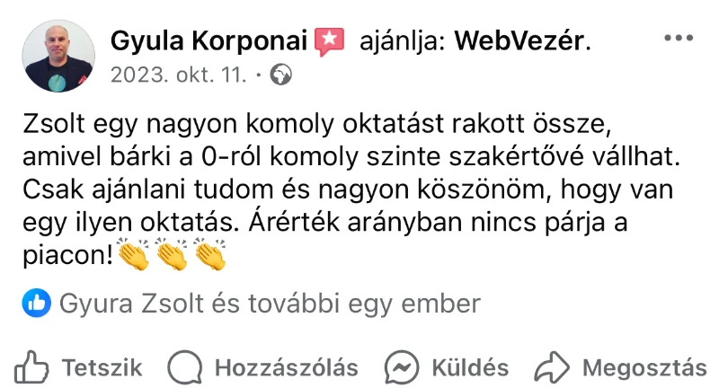Zsolt előbb volt kivitelező, mint oktató. Amiről beszél, abban több évnyi gyakorlati tapasztalata van.