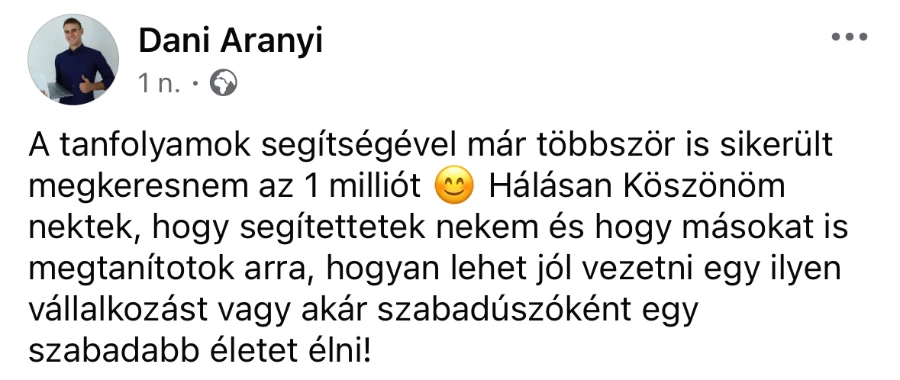 Naponta érdemes minimum 1-2 órát tanulásra szánni, hogy ha mielőbb szeretnél szabadúszóvá válni. Természetesen, ha a meló mellett ennél több idő is rendelkezésedre áll, akkor az csak jó lehet. Volt olyan ügyfelünk, aki már 1 hónap alatt eredményeket ért el, de olyan is, aki 4 hónap után lett szabadúszó, de velük találkozni fogsz majd a mentor csoportunkban.